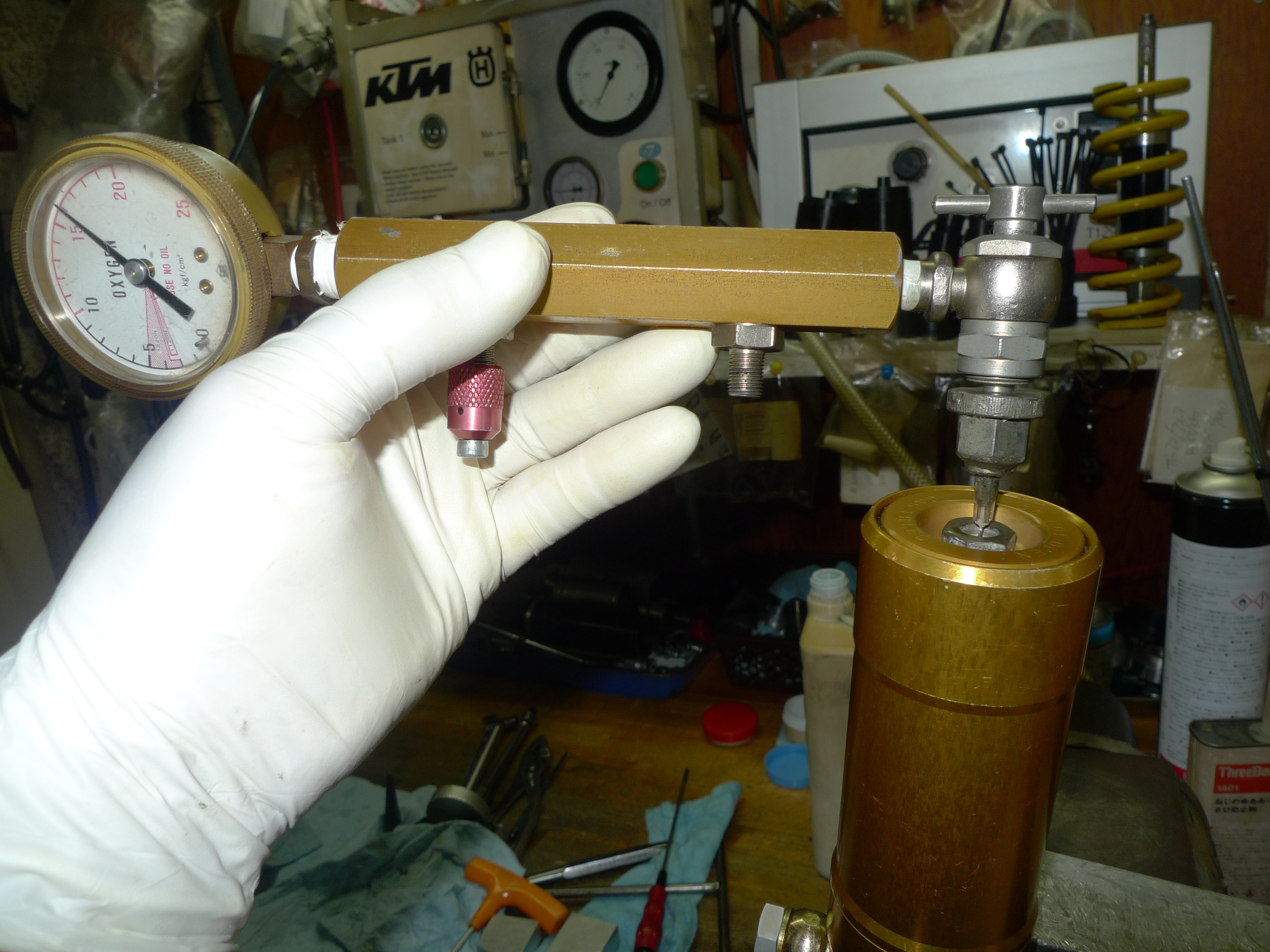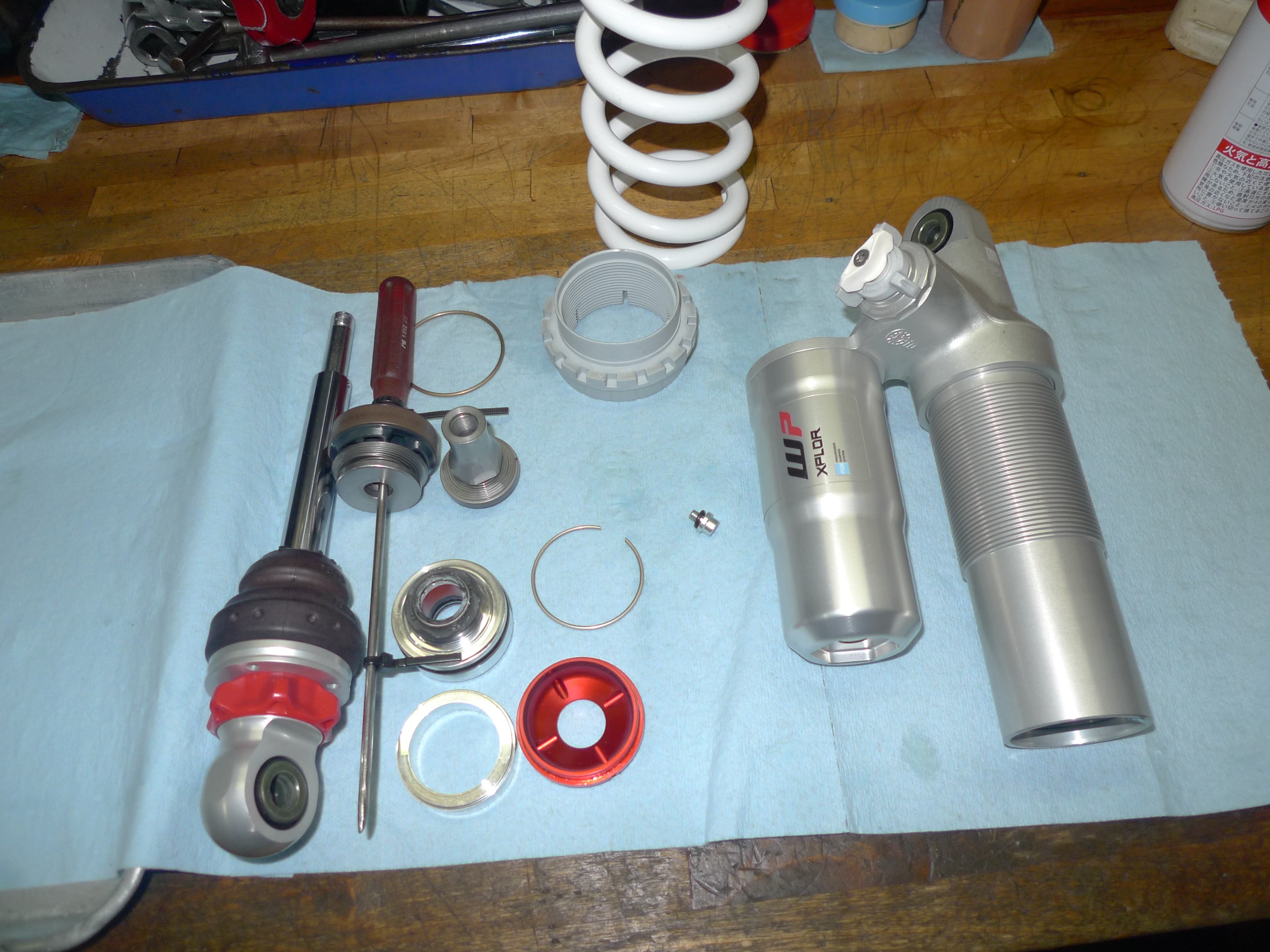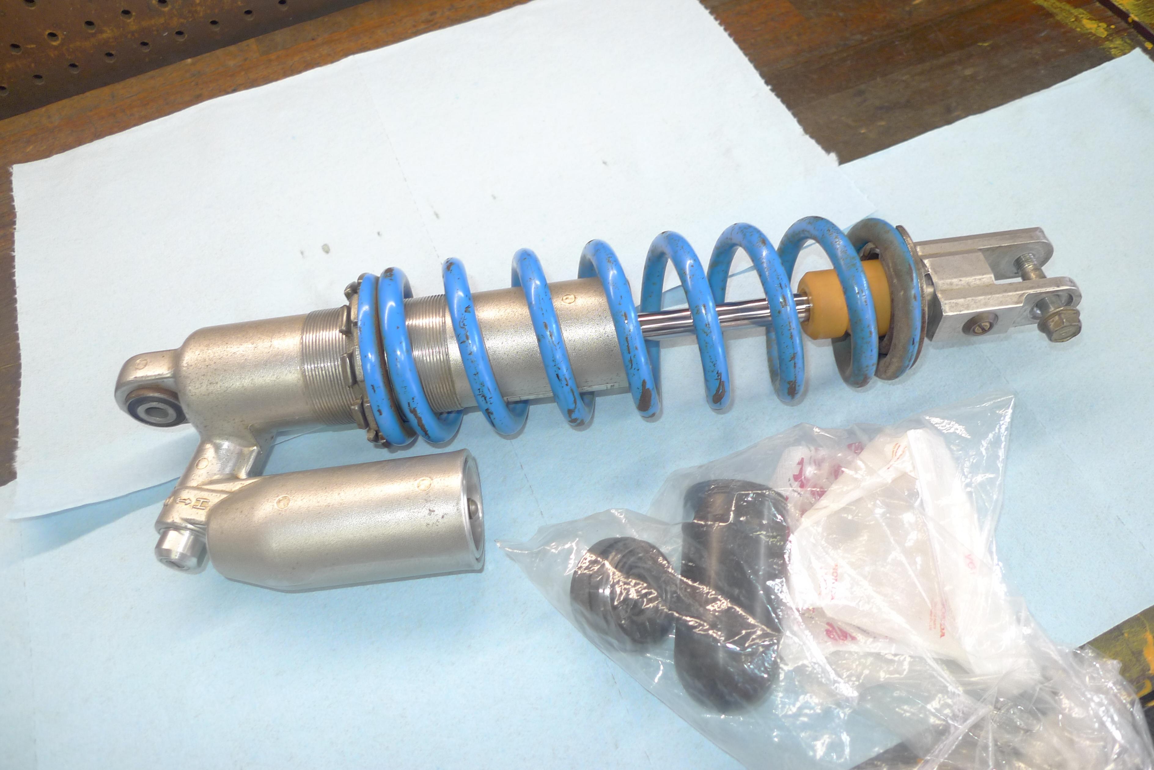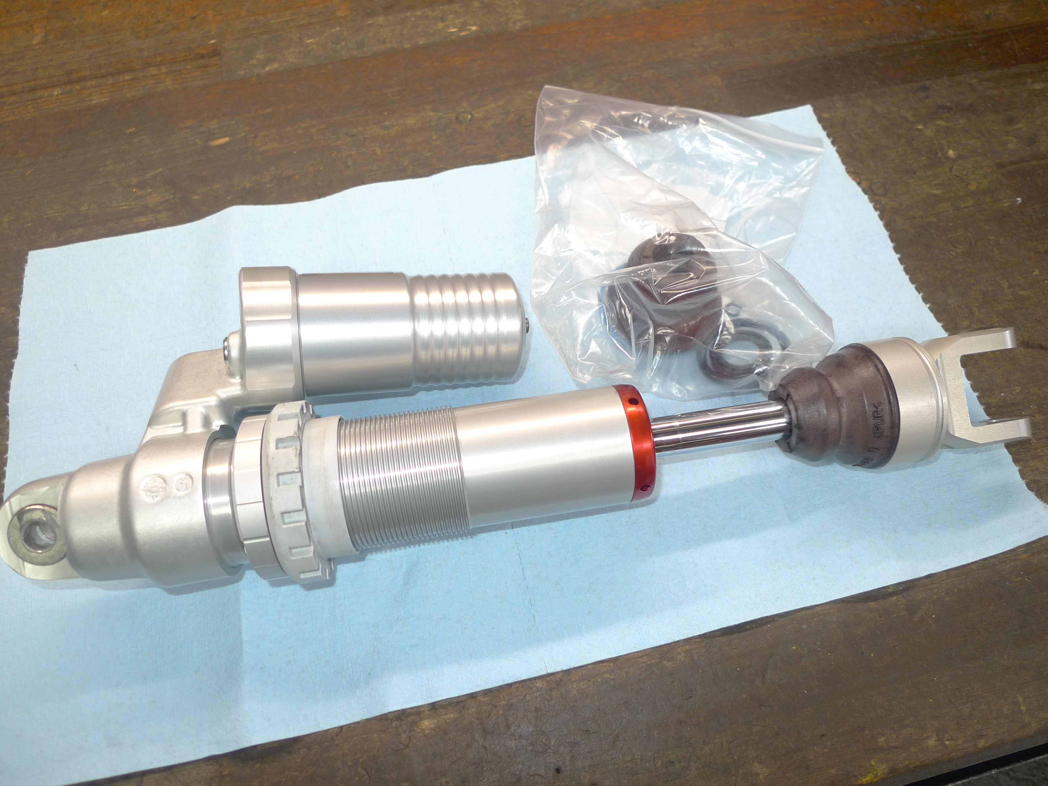 TOGASHI製リアショックのオーバーホールを行いました。以前に作業させて頂いてからおおよそ1年程経過です。走行フィーリングに違和感がありご依頼を頂きました。原因は窒素ガス圧の低下でした。前回作業でブリーザータンク関連のケアも行っていましたので、今回はフリーピストンやタンクキャップまでの現物交換を行いました。スペアパーツ類を全て準備していただき大変助かりました。その後不具合はございませんでしょうか。引き続き、どうぞよろしくお願い致します。