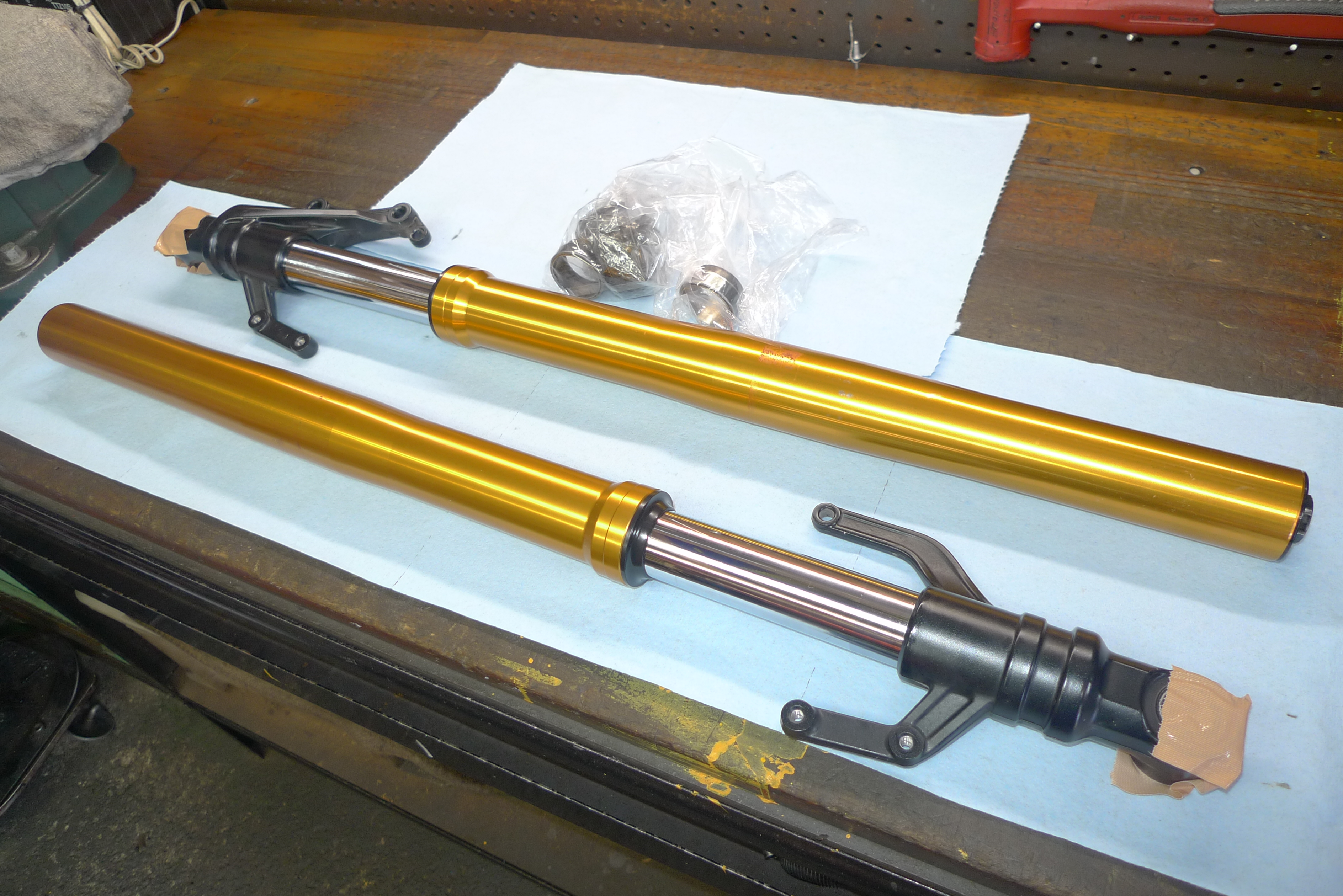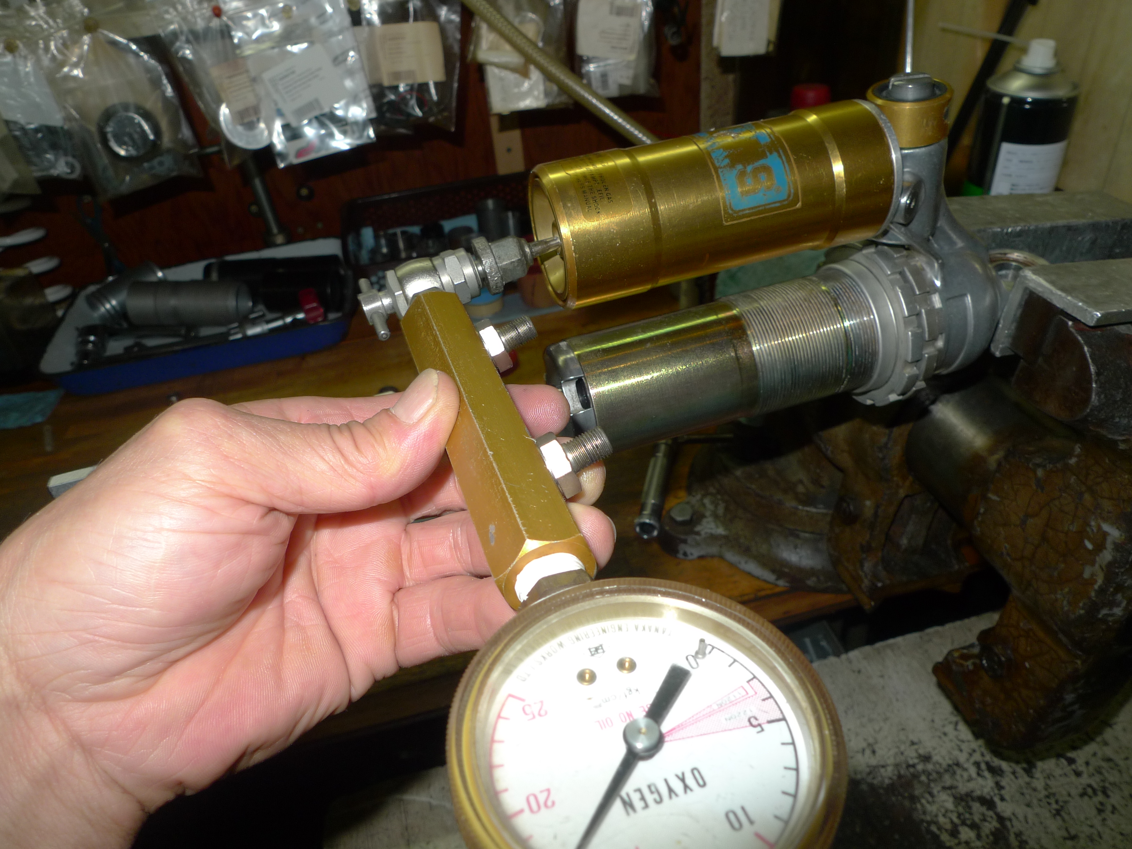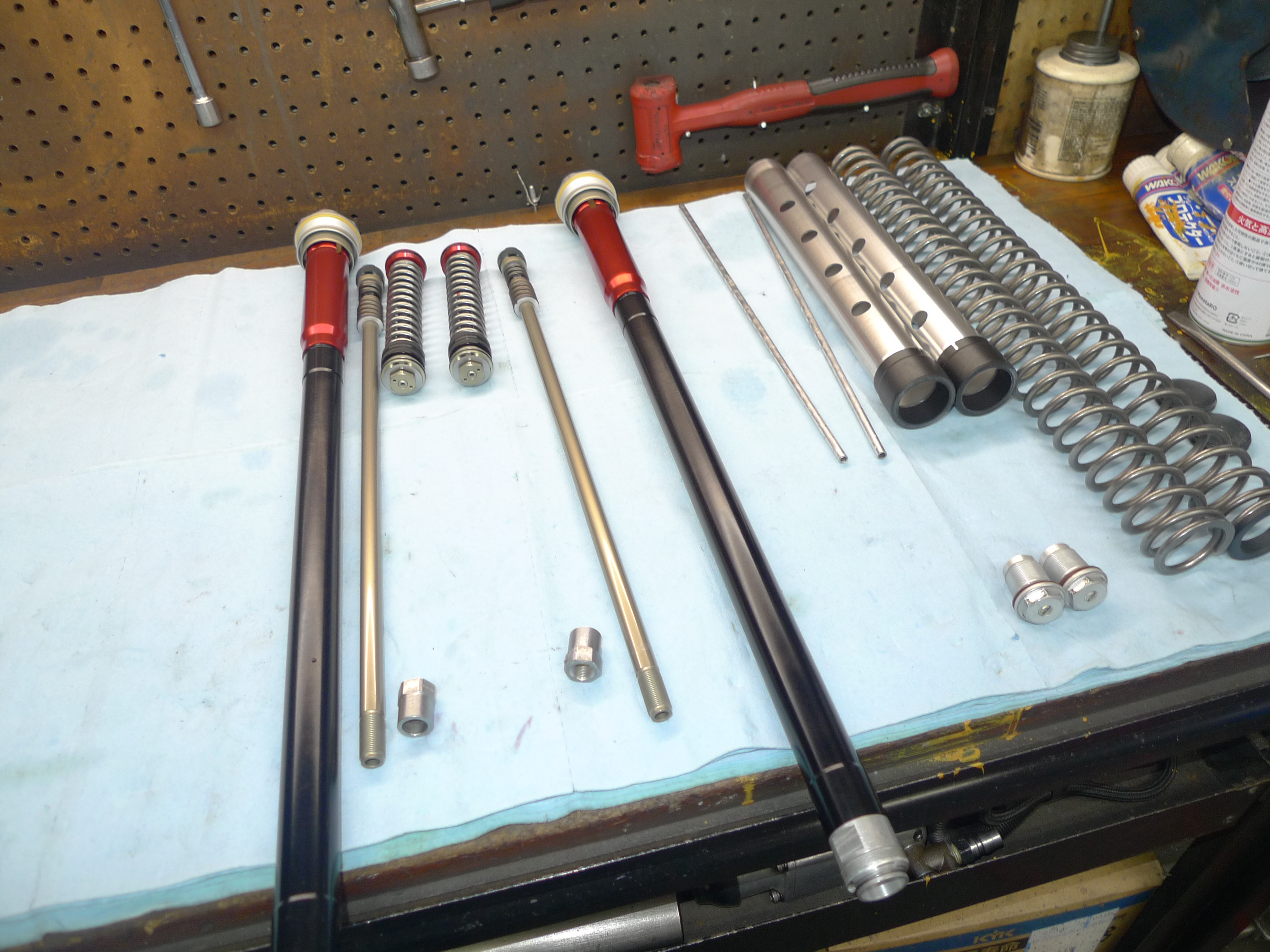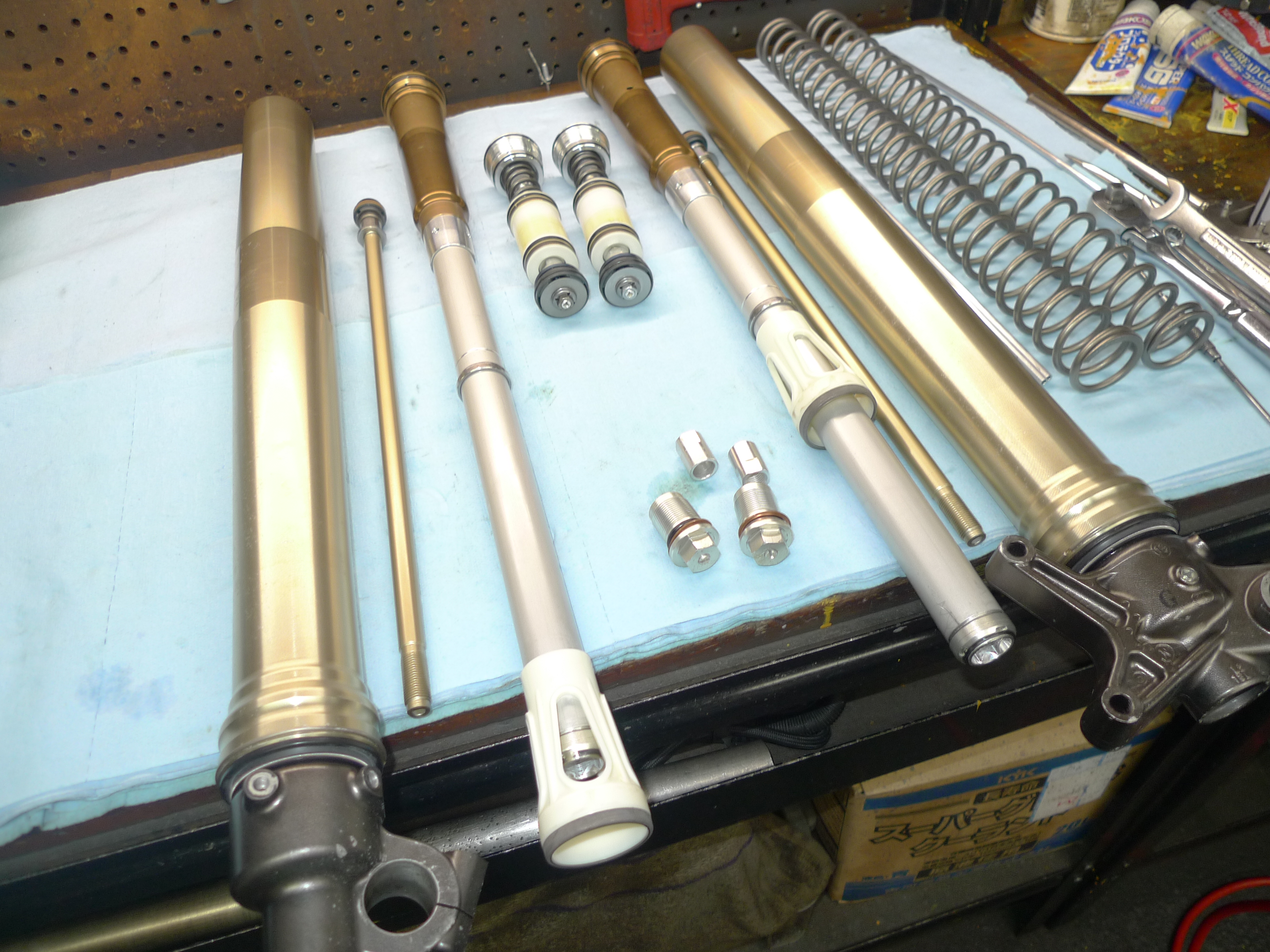 TOGASHI製リアショックのオーバーホールを行いました。以前に作業させて頂いてからおおよそ1年程経過です。走行フィーリングに違和感がありご依頼を頂きました。原因は窒素ガス圧の低下でした。前回作業でブリーザータンク関連のケアも行っていましたので、今回はフリーピストンやタンクキャップまでの現物交換を行いました。スペアパーツ類を全て準備していただき大変助かりました。その後不具合はございませんでしょうか。引き続き、どうぞよろしくお願い致します。