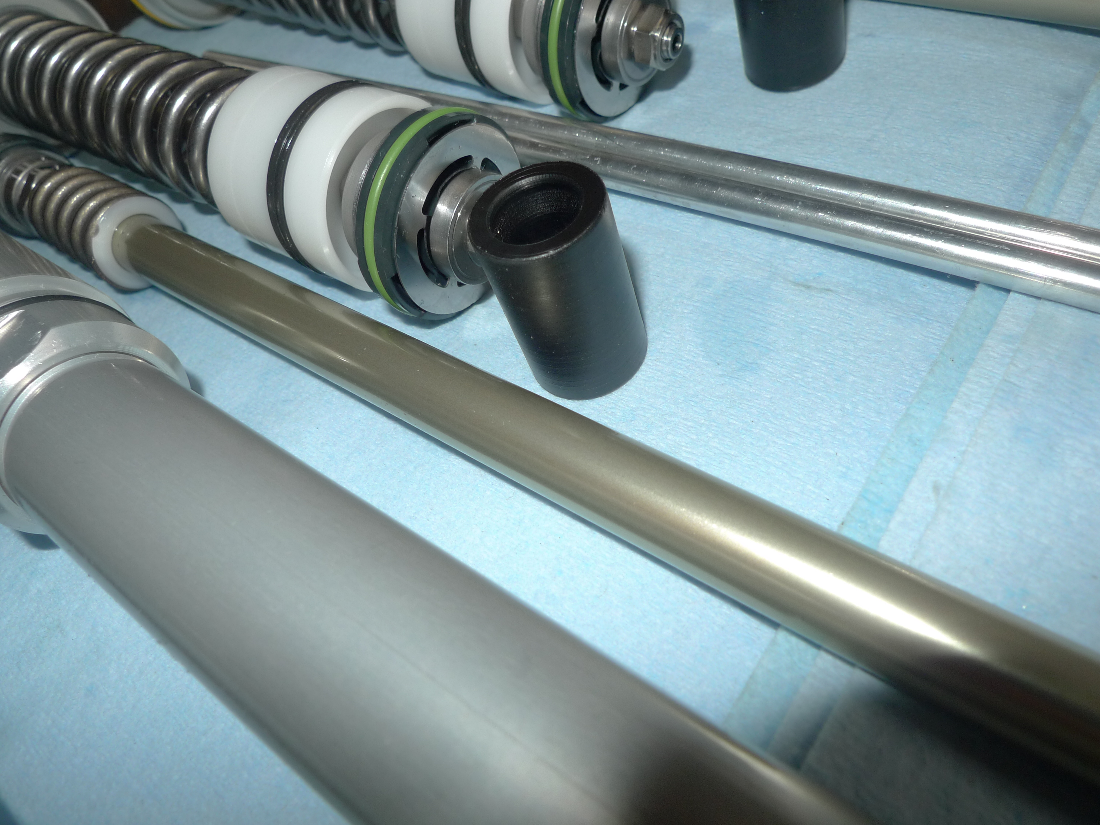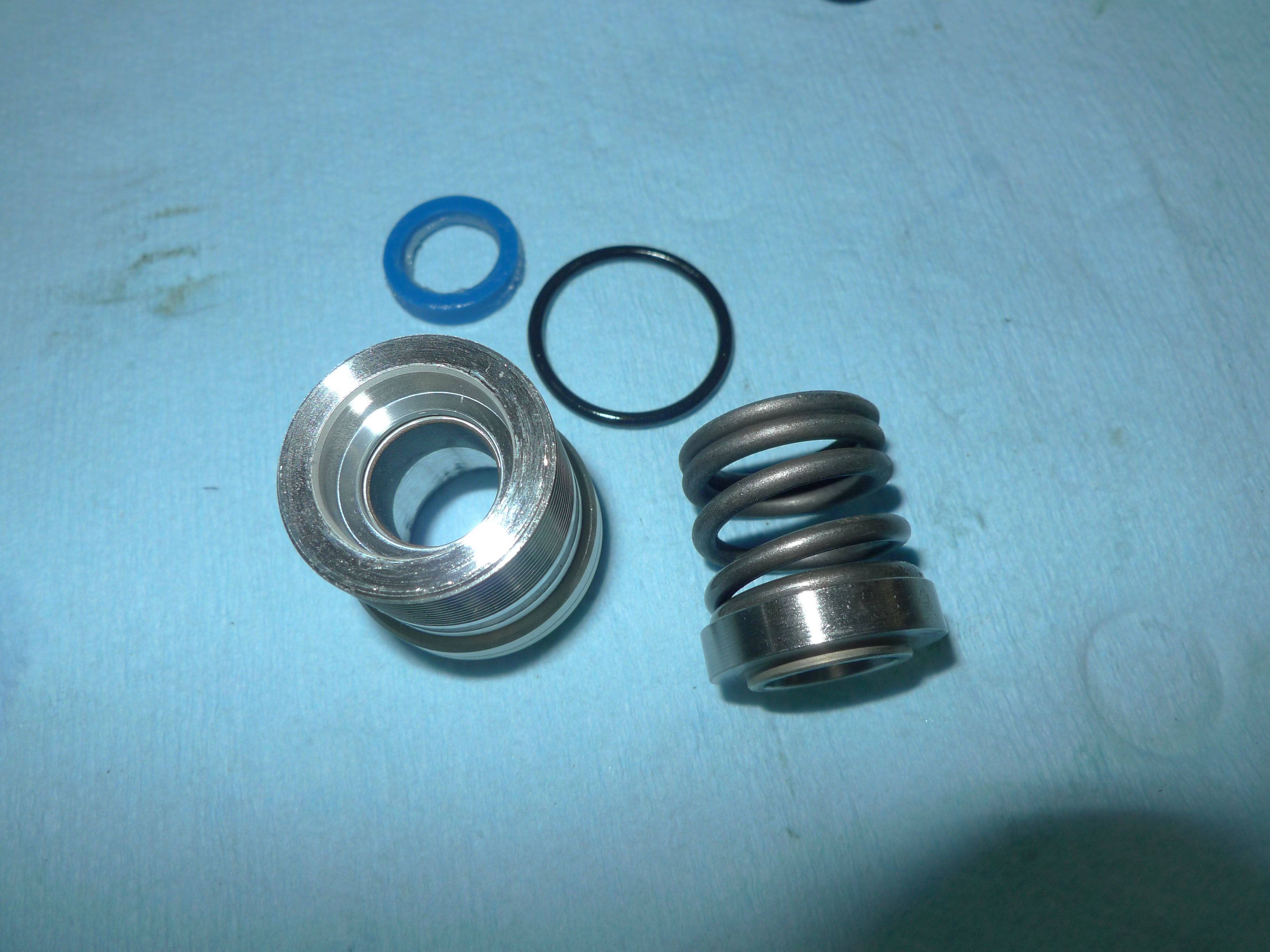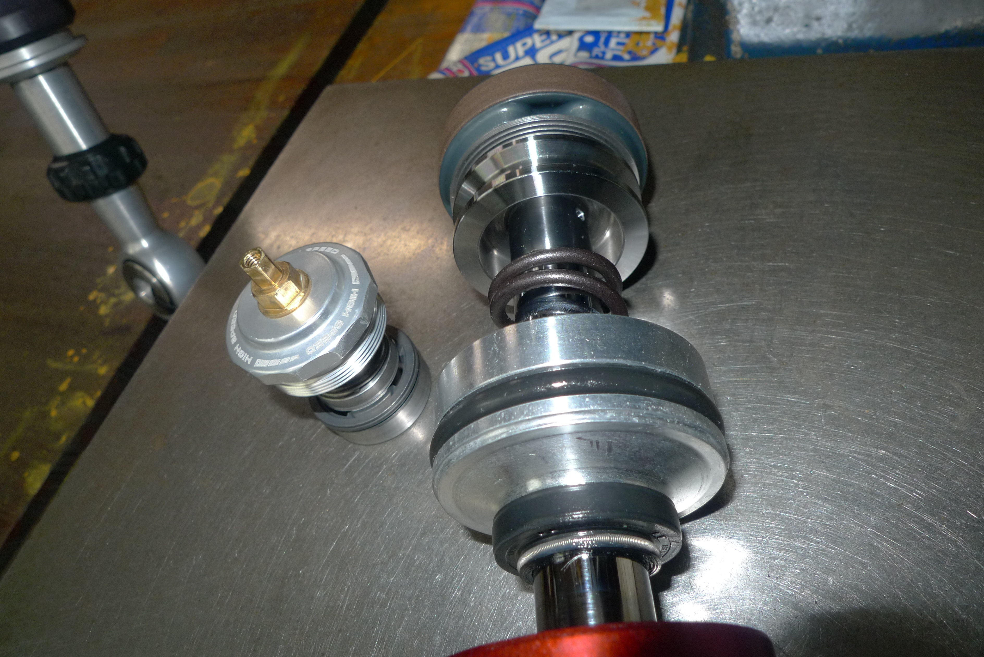 油圧プリロードアジャスターの作業です。十分な調整ストロークが有りませんでした。ピストンとシリンダーの表面研磨を行い要所のOリング交換を行います。